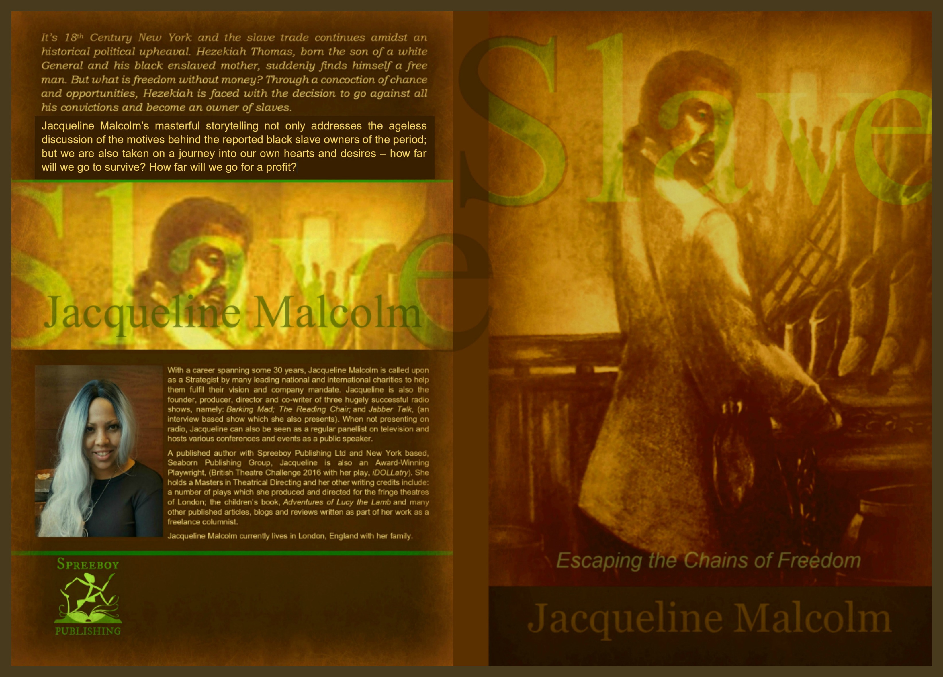 Slave Book Cover Updated Posted on October 5, 2017November 17, 2017 by Karol the Artist Artwork produced by Spreeboy Publishing for second publication of Slave in October 2017
